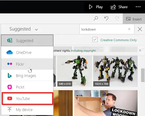 Search & add Content to Microsoft Sway